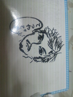 代わりに、いつものとこでご飯食べてたら他の席の人達が話題にしていた、えぐ☆ざいるの彼を描きました。予想だとこんな顔です(*・x・)ノ